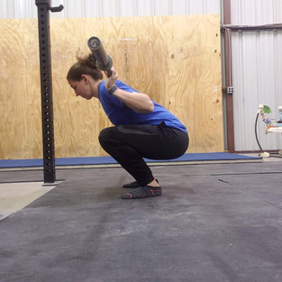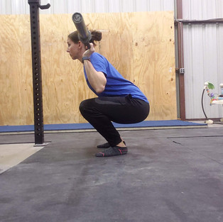 The weight is loaded in the front of the person with a direct load over the midfoot to maintain an upright trunk while loading into a squat. The front squat position takes less work in the low back to maintain an upright posture however an adequate amount of midback ROM and strength is needed to avoid dumping forward. Less ankle ROM is required as you can counterbalance yourself with the bar and “sit back” more.